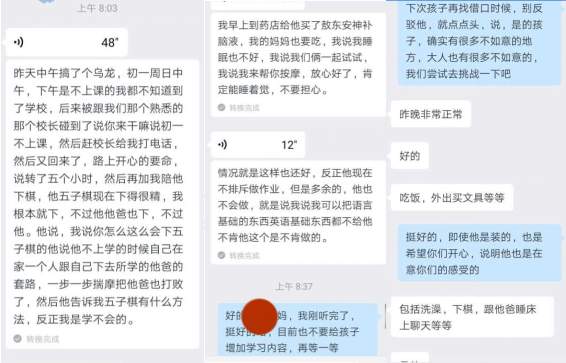 根据老师的指导和建议,爸爸妈妈共同坚持,最终孩子妥协,开始遵守规则,上交手机和平板,按时上学做作业。