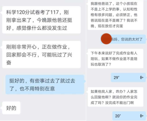 l 爸爸不相信心理指导,不配合指导方法,私下与孩子做交易。